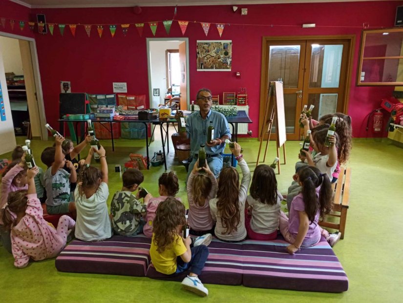 Επιστρέφοντας στο Πυργί σταματώ για να στολίσω τα ανθοδοχεία του σχολείου με μια αγκαλιά κορωνέϊκους κλάδους αγλαόκαρπης ελαίας και γεμίζω καμιά 25ρια μπουκαλάκια για τους γονείς. Αύριο, θα έχει πλούσια βιωματική μάθηση με… ολίγη αυτοαναφορικότητα για την μοναχική οδύσσεια της συλλογής ελαιοκάρπου.