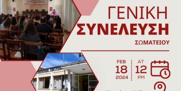 Το Διοικητικό Συμβούλιο του Σωματείου μας καλεί τα μέλη του σε Γενική Συνέλευση που θα πραγματοποιηθεί την Κυριακή 18 Φλεβάρη 2024 στο Εργατικό...