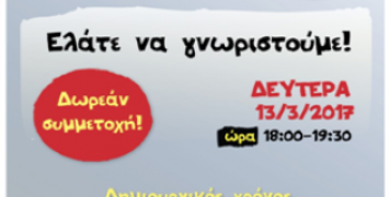 Η ομάδα δημιουργικών δραστηριοτήτων «Σβούρα» καλεί τους μικρούς της φίλους να παίξουν, να μάθουν και να δημιουργήσουν, σε μια δωρεάν συνάντηση, τη...