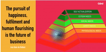 Το να παραμείνει μια επιχείρηση μοναδική, απαραίτητη, με στόχο να διατηρήσει μεταξύ άλλων τη σύνδεση με το αντικείμενό της στο μέλλον, αποτελεί προφανώς βασικό στόχο σε όλο τον κόσμο, είναι όμως αδιαμφησβήτητο ότι η τεχνολογία θα συνεχίσει να δημιουργεί εκθετικά κύματα διάσπασης με έναν ακόμα ταχύτερο ρυθμό. Σύντομα, όταν η τεχνολογία θα καταστήσει σχεδόν τα πάντα αποτελεσματικά και σε αφθονία, πιστεύω ότι θα πρέπει να εστιάσουμε στις πραγματικά ανθρώπινες αξίες του επιχειρείν, π.χ. να καταστήσουμε ανθρώπινη ή καλύτερα να υπερβούμε την τεχνολογία και να ανέλθουμε στην κορυφή της πυραμίδας ιεράρχησης αναγκών κατά Maslow (φυσιολογικές, ασφάλειες, κοινωνικές, αυτοεκτίμησης, αυτοπραγμάτωσης), ως άτομα και ως επιχειρήσεις. Η επιτυχία των επιχειρήσεων δεν θα εξαρτάται τόσο από την σωστή λειτουργία τους, τα υπέροχα προϊόντα τους ή τις φανταστικές τους τιμές, αλλά περισσότερο από τον μοναδικό τρόπο με τον οποίο θα ενισχύουν την ανάπτυξη των ανθρώπων τους. Σκοπός της ζωής άλλωστε είναι η αναζήτηση της ευτυχίας.
