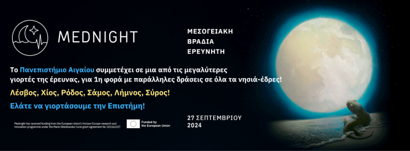Σε έξι νησιά θα φιλοξενηθεί φέτος για πρώτη φορά η «Μεσογειακή Βραδιά Ερευνητή 2024» του Πανεπιστημίου Αιγαίου. Πρόκειται για τα έξι νησιά (Λέσβος, Χίος, Ρόδος, Λήμνος, Σάμος και Σύρος) στα οποία λειτουργούν οι σχολές του Πανεπιστημίου. Η εκδήλωση αυτή αποτελεί μια σημαντική πρωτοβουλία, που υλοποιείται μέσω της συνεργασίας του Μη Κερδοσκοπικού Οργανισμού SciCo, του Πανεπιστημίου Αιγαίου και της Επιτροπής Ερευνών του ιδρύματος, στοχεύοντας στην προώθηση της επιστημονικής έρευνας και της τεχνολογίας.