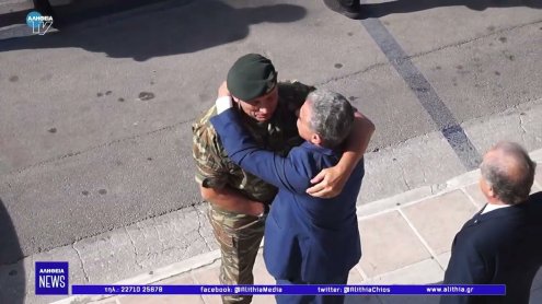 Ο αρχηγός ΓΕΕΘΑ πρόσφερε στον Δήμαρχο Χίου αναμνηστική πλακέτα και επετειακό νόμισμα ενώ με τη σειρά του ο Σταμάτης Κάρμαντζης του προσέφερε το έμβλημα της Χίου και μια σειρά εκδόσεων για το νησί μας.