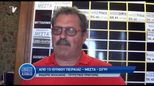 Το πλοίο θα αναχωρεί από τον Πειραιά κάθε Κυριακή στις 8.00 μ.μ. και θα φτάνει στα Μεστά στις 3.30 - 4.00 τα ξημερώματα. Επίσης θα αναχωρεί τη Δευτέρα από τα Μεστά στις 11.20 - 11.50 μ.μ. και θα φθάνει στον Πειραιά στις 7.20 π.μ.