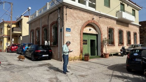 Ο Δημήτρης Σταμπόλος, Μηχανικός Εμπορικού Ναυτικού, υπήρξε ποιητής και λογοτέχνης, σύζυγος της ξεχωριστής Χιώτισσας μουσικού Πόλυς Σταμπόλου. Σημαντικότερα έργα του, οι ποιητικές συλλογές και θεατρικά έργα, Γαλανοί χρησμοί, Το παραμύθι της εξουσίας, Στου πέτρινου καιρού το μέσα μέρος, Διατάραξη κοινής ησυχίας, Χρώματα και παραστάσεις κ.α.