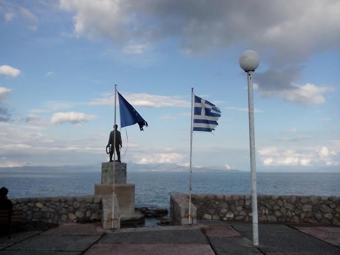 Οι Πρόσκοποι, ο γερανός, το Μπούρτζι, και στη μέση το ερείπιο. Χίος, λιμάνι ... 2014